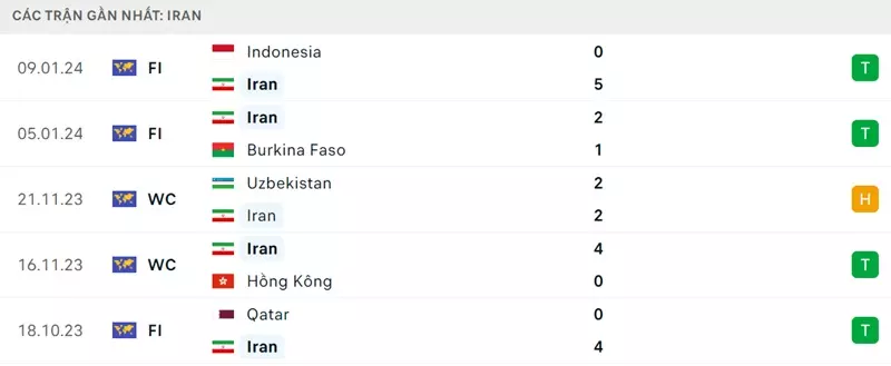Xét ở 5 lần ra sân gần nhất, họ thắng 4 và hòa 1. 13 trận gần nhất, dàn sao Tây Á thắng tận 11. Iran sở hữu phong độ ấn tượng và chất lượng nhân sự xuất sắc. Đáng chú ý, HLV trưởng Amir Ghalenoei đã triệu tập 26 cầu thủ tham dự Asian Cup, trong đó có tiền đạo Sardar Azmoun của AS Roma, người đã ghi 49 bàn sau 75 trận. Mehdi Taremi thuộc biên chế Porto là một cái tên nổi bật khác trong đội. Iran vì thế phải chiêu đãi người hâm mộ bằng màn ra quân hoành tráng tại Asian Cup 2023.