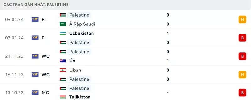 Khả năng đó dễ xảy ra bởi họ gặp một Palestine thua kém về mọi mặt. Palestine đang trải qua lần thứ ba liên tiếp góp mặt ở Asian Cup và hy vọng viết lại lịch sử trên đất Qatar. Trong cả hai lần tham dự giải đấu vào năm 2015, 2018, những chú sư tử xứ Canaan đã không thể giành chiến thắng tại vòng bảng. Họ quyết tâm khắc phục điều đó tại giải lần này.