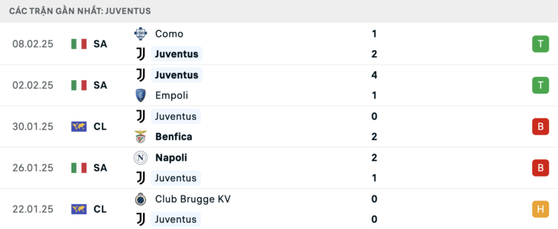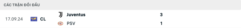 Kết quả đối đầu các trận gần đây nhất của Juventus vs PSV
