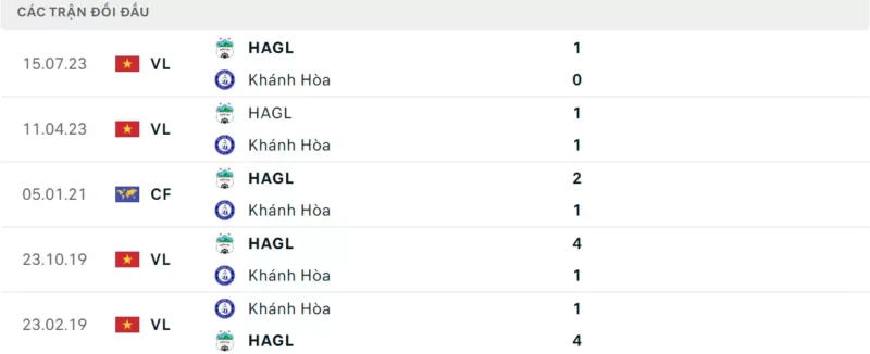 Thành tích đối đầu Khánh Hòa vs HAGL: