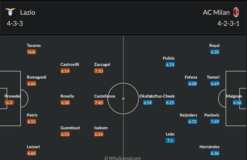 Tỷ lệ trận đấu Lazio vs AC Milan
