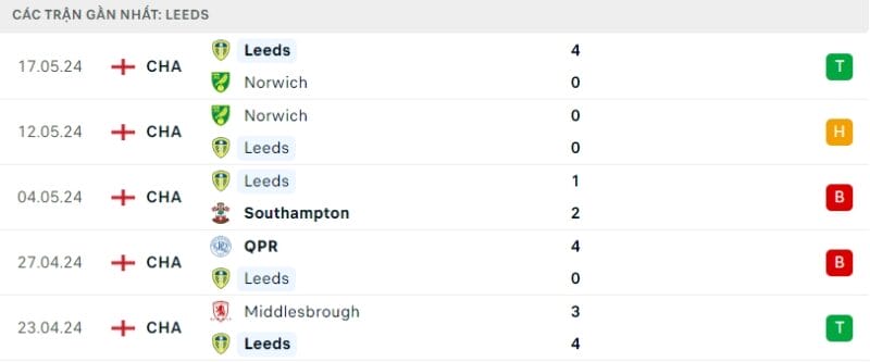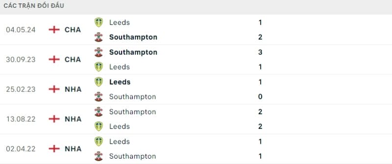 Thống kê 20 lần đối đầu gần nhất giữa Southampton và Leeds cho thấy sự cân bằng tuyệt đối. Mỗi câu lạc bộ giành được 8 chiến thắng và hòa nhau 4 lần. Tuy nhiên, những dữ liệu gần đây cho thấy sự áp đảo tuyệt đối của Southampton. Cụ thể, đoàn quân của huấn luyện viên Russell Martin đã toàn thắng Leeds ở cả trận lượt đi, lẫn lượt về Championship 2023/24.