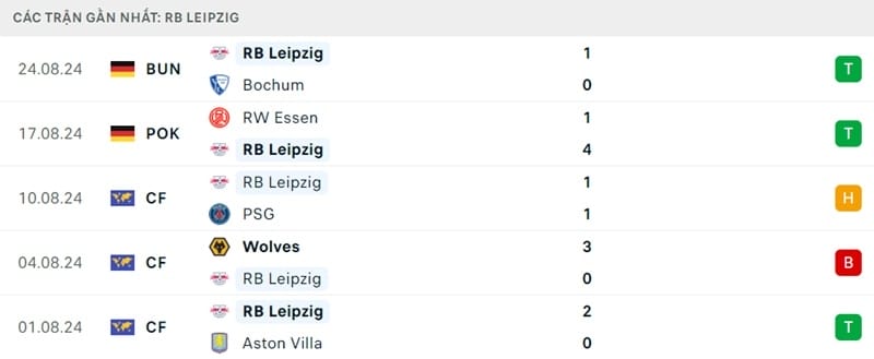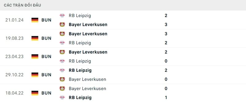 Kết quả đối đầu các trận gần đây nhất của Leverkusen vs Leipzig