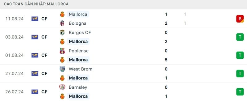 6 trận giao hữu hè chứng kiến Mallorca thắng 5 và thua 1. Họ thiết lập 5 trận thắng liên tiếp trước khi thua Bologna với tỷ số 1-2.