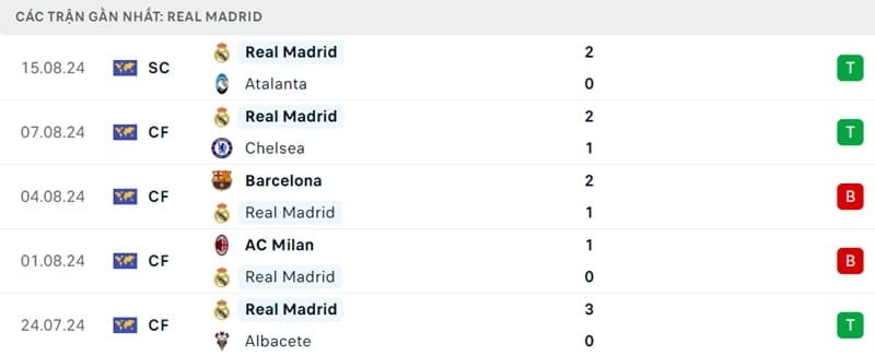 Không tính trận giao lưu nhẹ nhàng với Albaceste, thầy trò HLV Carlo Ancelotti chỉ đá 3 trận tại Mỹ vào hè này. Họ thua AC Milan, Barcelona trước khi hạ Chelsea. Sau đó, nhà ĐKVĐ Champions League dễ dàng vượt qua Atalanta.