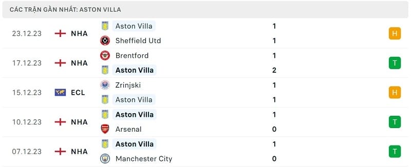 Phong độ gần đây của Aston Villa cũng rất tốt. Tính trong 5 trận gần nhất trên mọi đấu trường, đoàn quân của HLV Unai Emery không phải nhận bất cứ thất bại nào (3 thắng, 2 hòa). Dù vậy ở trận đấu gần nhất, Aston Villa lại gặp rất nhiều khó khăn trước một đội bóng ở nhóm xuống hạng là Sheffield United khi hòa 1-1.