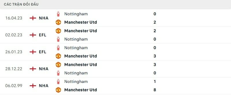 Thông tin đối đầu Man United vs Nottingham Forest