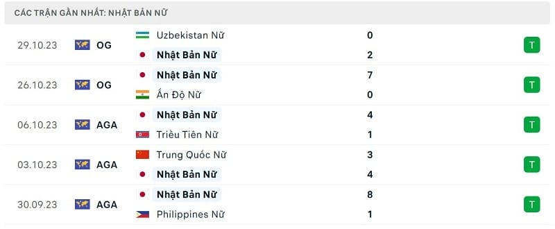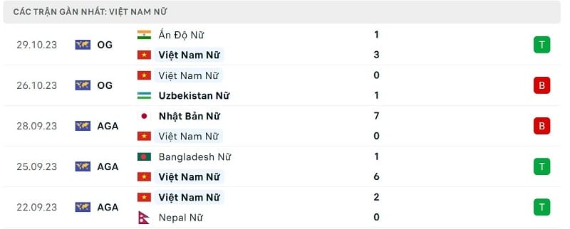 Phong độ gần đây nữ Nhật Bản vs nữ Việt Nam: