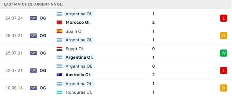 Kết quả các trận đấu gần đây giữa Olympic Argentina vs Olympic Iraq