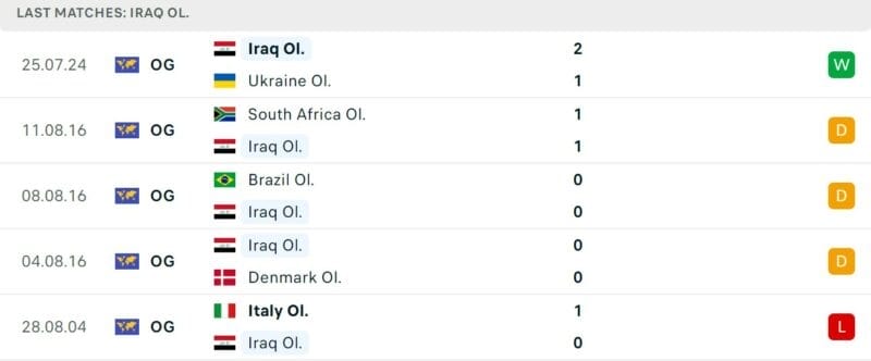 Ở lần gần nhất tham gia Olympic vào năm 2016, Olympic Iraq đã bị loại ngay từ vòng bảng với 3 trận toàn hòa. Điều đó cho thấy đội bóng này rất khó bị đánh bại tại đấu trường Olympic.