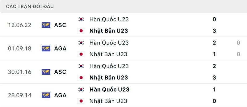 Thông tin đối đầu Olympic Hàn Quốc vs Olympic Nhật Bản