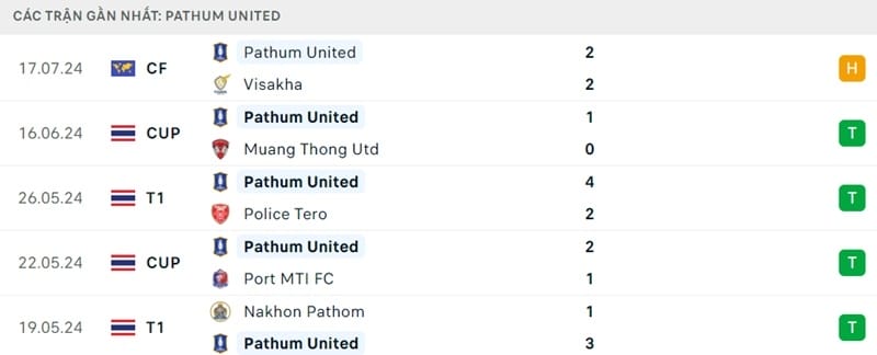 Ở trận giao hữu đầu tiên trong hè này, Pathum hòa 2-2 với Visakha. Vào giai đoạn cuối mùa vừa rồi, họ thiết lập chuỗi 4 trận thắng để cho thấy sức mạnh của mình. Dù vậy, khi đà thăng hoa bị chặn đứng bởi kỳ nghỉ hè, thầy trò HLV Teguramori sẽ cần phải cố gắng tìm lại cảm giác chiến thắng.