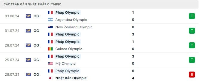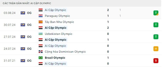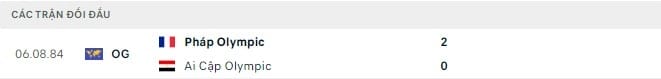 Kết quả các trận đấu gần đây nhất giữa Olympic Pháp vs Olympic Ai Cập