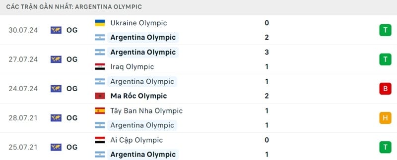 5 trận gần nhất của Olympic Argentina, họ thắng 3, thua 1 và hòa 1. Dù vậy, do 2/5 trận diễn ra từ năm 2021 nên khó thể đánh giá sức mạnh ổn định của Argentina vào thời điểm hiện tại