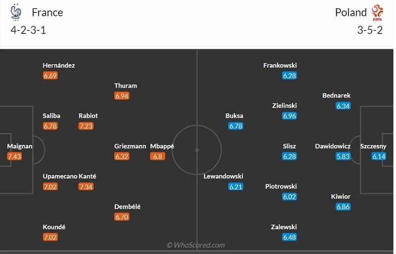 - Whoscored: Pháp 2-0 Ba Lan.