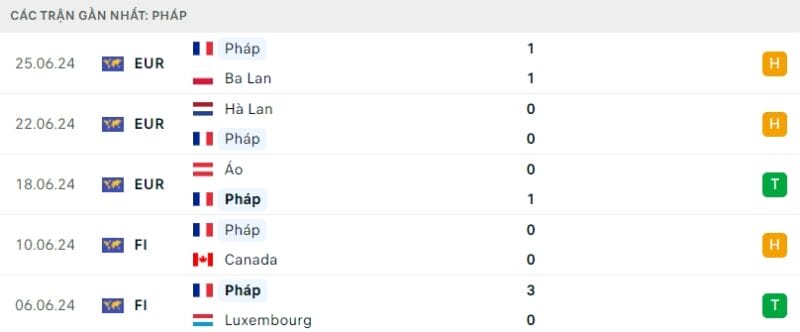 Kết quả đối đầu các trận gần đây nhất của Pháp vs Bỉ