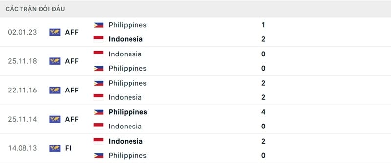 Trước thềm trận đấu tới đây, bộ đôi Đông Nam Á chắc chắn muốn bỏ túi 3 điểm đầu tiên. Philippines và Indonesia thuộc cùng khu vực nên họ đã quá hiểu nhau sau những lần chạm trán trong quá khứ. Xét về thành tích đối đầu ở 5 trận gần nhất, Philippines thắng 1, hòa 2 và thua 2 trước gã hàng xóm.