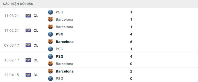 PSG chỉ thắng 3 trong 11 lần đối đầu với Barcelona. Trong khi, đội bóng đến từ Tây Ban Nha có 4 thắng lợi. Tuy nhiên, Mbappe và các đồng đội lại thi đấu tốt hơn ở 2 lần đụng độ gần nhất, với thành tích 1 chiến thắng và 1 trận hòa. Tại vòng 1/8 Cúp C1 2020/21, PSG đã đại thắng 4-1 ở xứ Catalan, rồi hòa 1-1 trên sân Công viên các Hoàng tử. Giới chuyên môn kỳ vọng PSG sẽ tiếp tục có lợi thế dẫn trước ở lượt đi vòng tứ kết Champions League 2023/24.