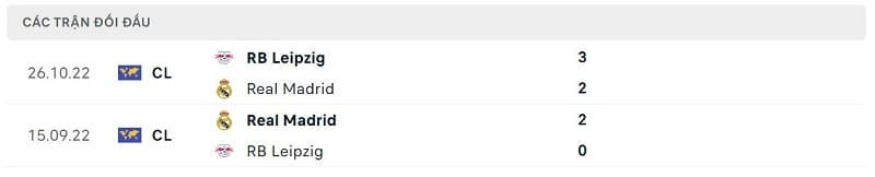 Thành tích đối đầu RB Leipzig vs Real Madrid: