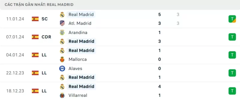 Thành tích đối đầu Real Madrid vs Barcelona: