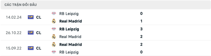 Thành tích đối đầu Real Madrid vs RB Leipzig: