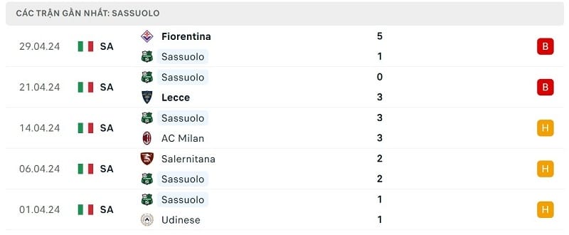 Về lý thuyết, Neroverdi vẫn còn nguyên cơ hội để trụ hạng. Nhưng xét về mặt phong độ, đó là mục tiêu vô cùng khó khăn đối với Sassuolo. Đoàn quân của HLV Davide Ballardini đang có chuỗi 6 trận không biết đến mùi chiến thắng (3 thua, 3 hòa). Tấm vé xuống Serie B đang ngày càng gần Sassuolo.