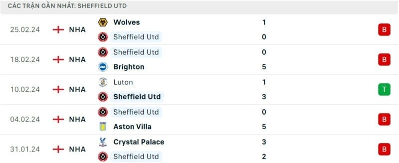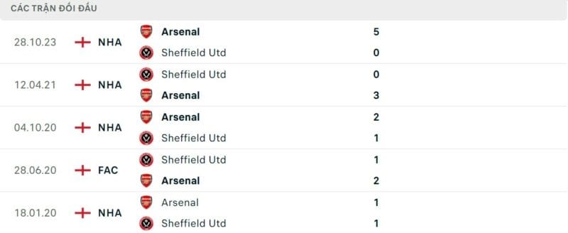 Thành tích đối đầu Sheffield vs Arsenal:
