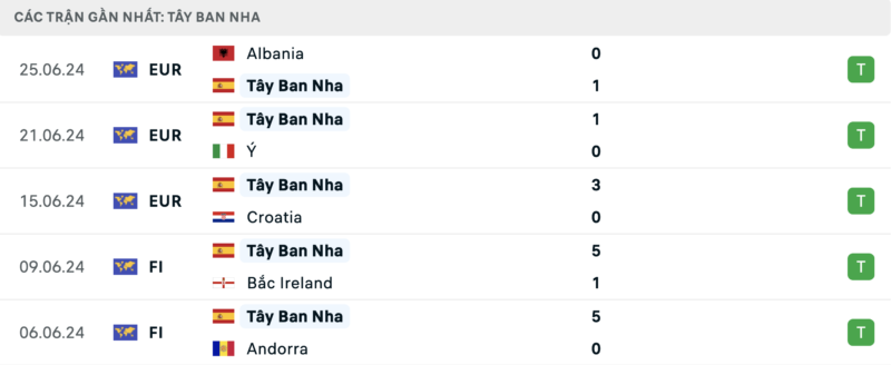 Tây Ban Nha rõ ràng là đội đang trình diễn phong độ cao nhất tại Euro 2024 với 3 trận toàn thắng. Họ đã nối dài chuỗi trận bất bại của mình lên con số 6, trong đó có 5 chiến thắng liên tiếp. Tất cả đều là những thắng lợi thuyết phục với sự áp đảo thuộc về La Roja.