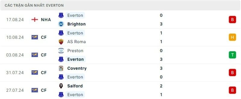 Sau trận ra quân, Everton được liệt vào nhóm có nguy cơ xuống hạng rất cao mùa này. Bối cảnh khó khăn tài chính, lấp lửng án phạt trừ điểm, đẩy The Toffees vào tình thế khó khăn. Không có sự bổ sung nào quá đáng chú ý trong mùa hè, Everton phơi áo 0-3 ngay trên sân nhà trước Brighton tại vòng 1. HLV Sean Dyche hoàn toàn bất lực với những gì đang có trong tay.