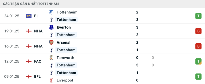 Tottenham thi đấu tốt tại các đấu trường cúp với những chiến thắng liên tiếp. Tuy nhiên phong độ tại Ngoại hạng Anh thì lại trái ngược khi Gà trống đã thua 5 trong 6 vòng gần nhất.