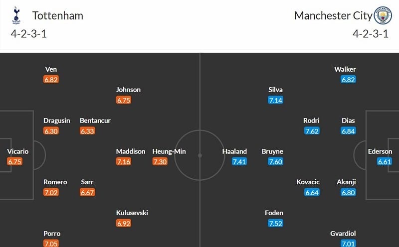 - Whoscored dự đoán Tottenham - Man City