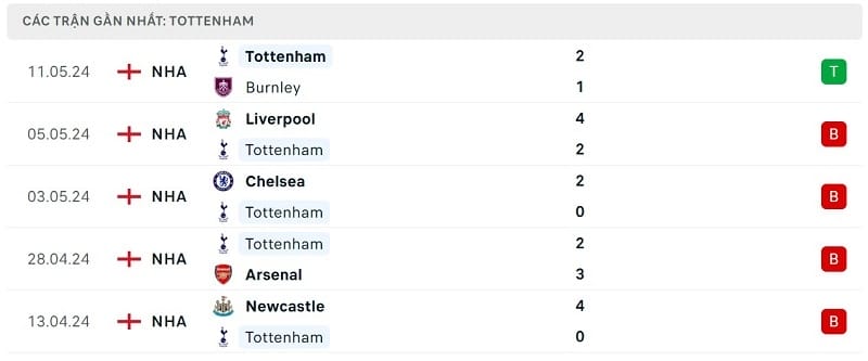 Chính chuỗi thành tích kém cỏi trên đã khiến đoàn quân của HLV Ange Postecoglou bị bỏ lại trong cuộc đua giành vé dự Champions League mùa sau. Tottenham hiện đứng thứ 5 với 63 điểm, kém đội xếp trên là Aston Villa 4 điểm.