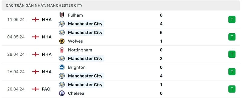 Chiến thắng trên còn nối dài chuỗi phong độ ấn tượng của Man City. Đoàn quân của HLV Pep Guardiola hiện có 5 trận thắng liên tiếp trên mọi đấu trường. Tính riêng tại Ngoại hạng Anh, Man City đang có chuỗi 21 trận bất bại liên tiếp. Lần cuối cùng nửa xanh thành Manchester nhận thất bại tại Ngoại hạng Anh đã là từ ngày 07/12/2023 khi thua Aston Villa với tỷ số 0-2.