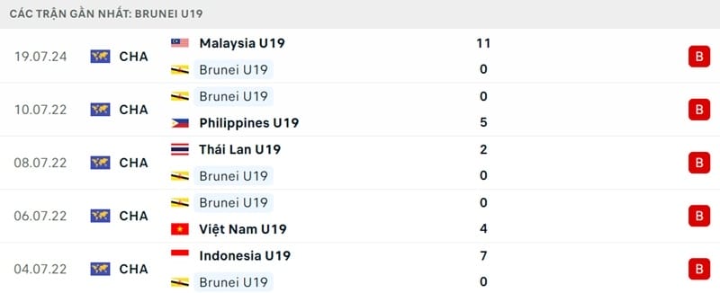 Trước khi thua thảm U19 Malaysia, U19 Brunei nhận 4 thất bại liên tiếp ở giải U19 Đông Nam Á 2022. Lúc bấy giờ, họ nhận 18 bàn thua và không thể sút tung lưới đối thủ một lần nào. U19 Brunei rõ ràng quá yếu so với mặt bằng chung tại Đông Nam Á.