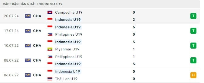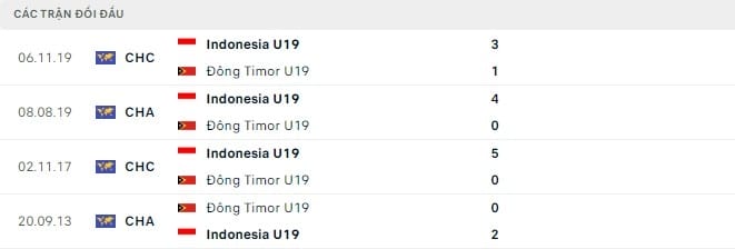 Kết quả đối đầu những trận gần đây giữa U19 Indonesia vs U19 Timor Leste