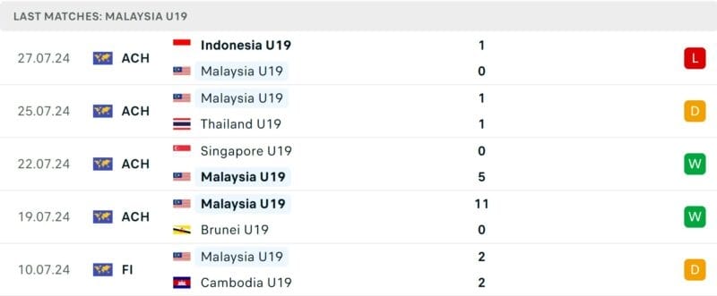 Phong độ U19 Malaysia
