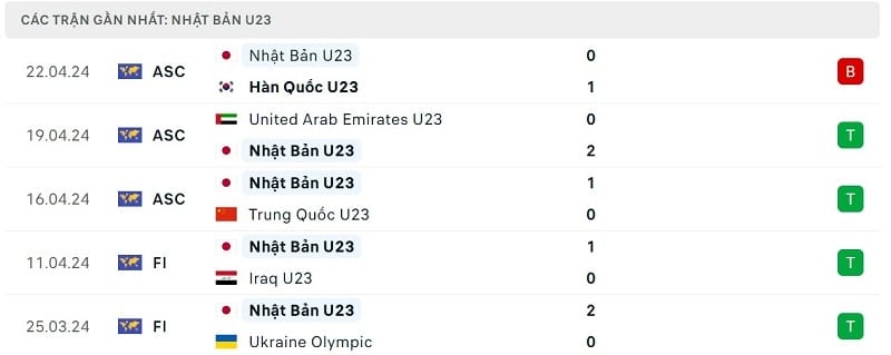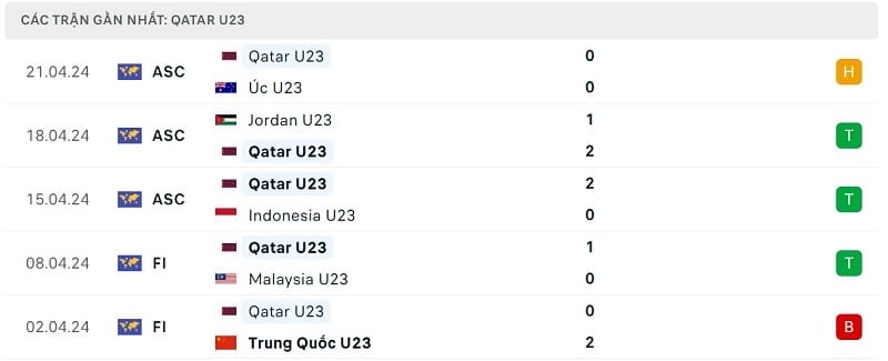 Phong độ gần đây U23 Qatar vs U23 Nhật Bản