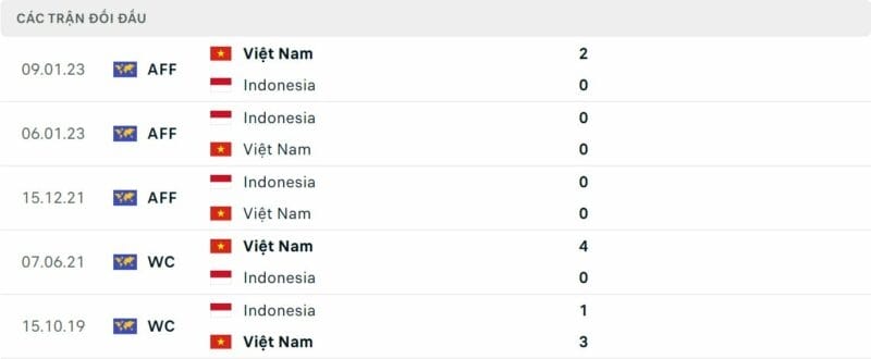 Thông tin đối đầu Việt Nam vs Indonesia: