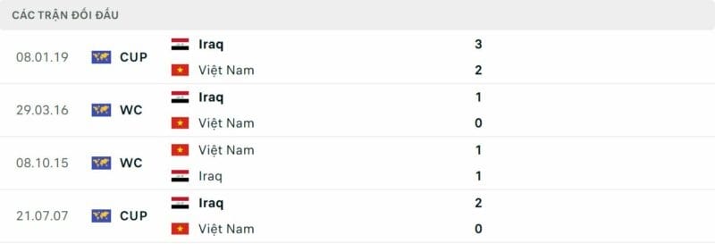 Thành tích đối đầu Việt Nam vs Iraq