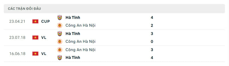 Thành tích đối đầu CAHN vs Hà Tĩnh