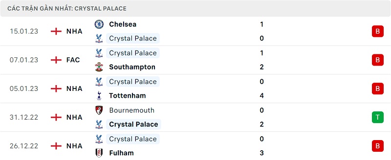 Trong khi đó, Crystal Palace lại thua liên tục 3 trận, thủng lưới tổng cộng 7 lần. Tính riêng ở Ngoại hạng Anh thì đại diện thành London đã “phơi áo” 4/5 lần ra sân gần đây. Vì thế, thầy trò HLV Patrick Vieira rơi xuống vị trí thứ 12.