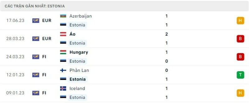 Phong độ 2 đội Estonia vs Bỉ