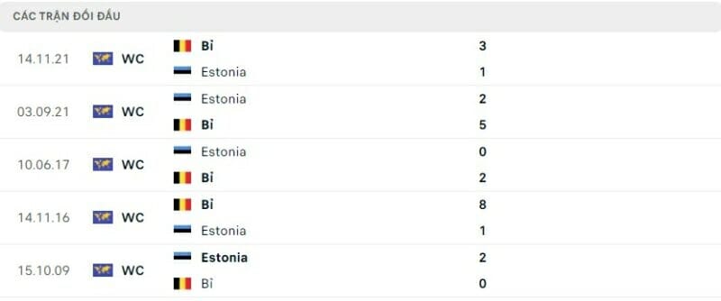 2 đội đã từng gặp nhau 2 lần ở vòng loại World Cup 2022. Bỉ giành chiến thắng cách biệt với tỷ số lần lượt là 5-2 và 3-1. Estonia dù thua cả 2 trận nhưng cũng có đến 3 lần làm tung lưới đối thủ. Vậy nên, trận đấu này khả năng cao đội khách sẽ tiếp tục chiến thắng nhưng không thể giữ sạch lưới.
