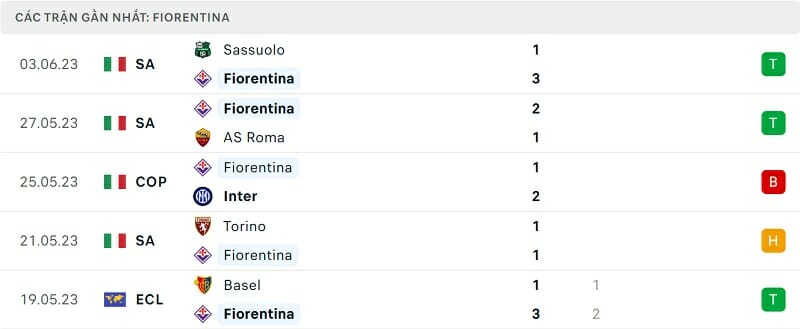 Phong độ Fiorentina vs West Ham