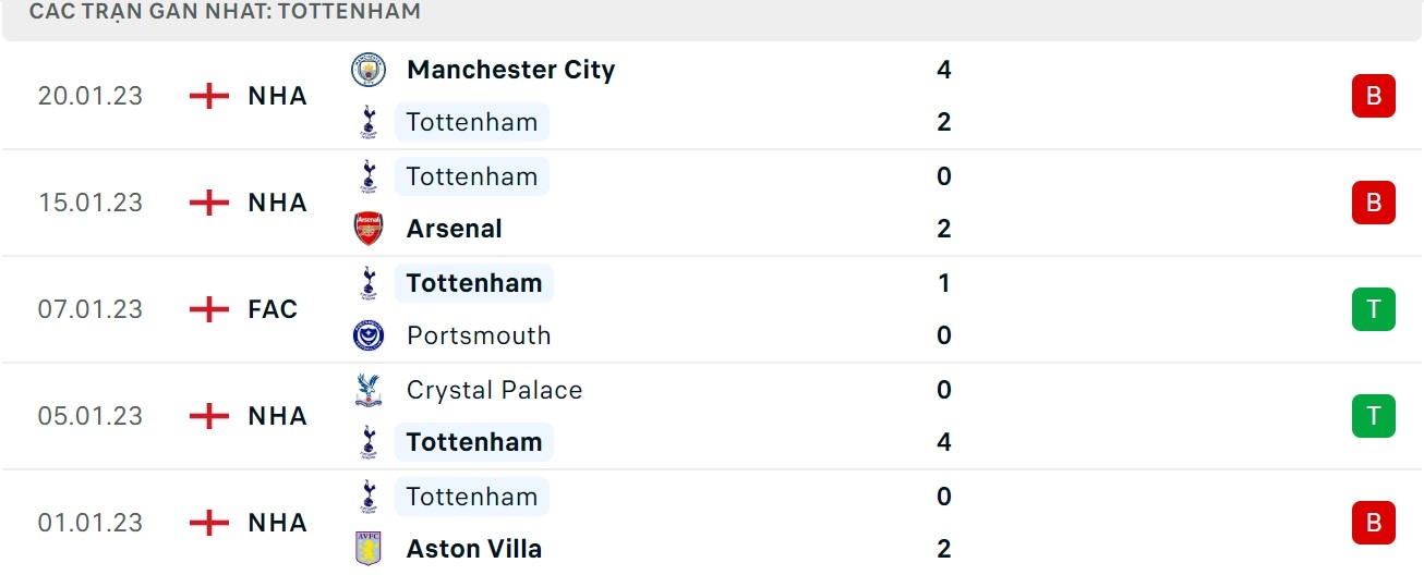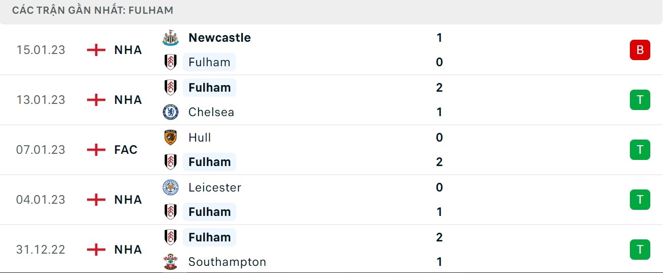 Phong độ gần đây Fulham vs Tottenham: