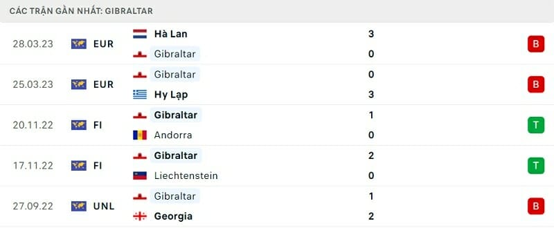 Đội bóng nhỏ bé dưới sự dẫn dắt của HLV Julio Ribas sau 2 trận tại vòng loại Euro 2024 chưa thể có chiến thắng nào. Hay nói rộng hơn, kể từ khi được tham gia giai đoạn này, Gibraltar chỉ biết đến hòa và thua. Họ ghi được vỏn vẹn 5 bàn thắng và phải nhận tới 93 bàn thua sau 20 trận đấu. Đó cũng là lý do mà giới mộ điệu thường gọi đội bóng này là ‘kho điểm’, ‘lót đường’ hay đội bóng ‘nhược tiểu’.
