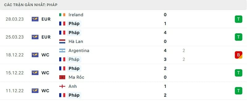 Kể từ sau World Cup 2022, ĐT Pháp ít nhiều đã có những thay đổi khi lần lượt Hugo Lloris, Karim Benzema và Raphael Varane nói lời chia tay ĐTQG. Tuy nhiên song song đó đội bóng đón nhận thêm những tài năng mới thậm chí còn tỏ ra nguy hiểm hơn. Ở vòng loại Euro 2024, Les Bleus đang dẫn đầu bảng B với thành tích toàn thắng.