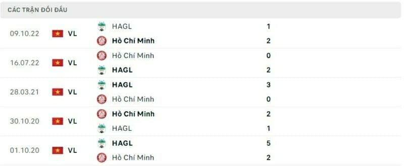 Thành tích đối đầu HAGL vs TPHCM