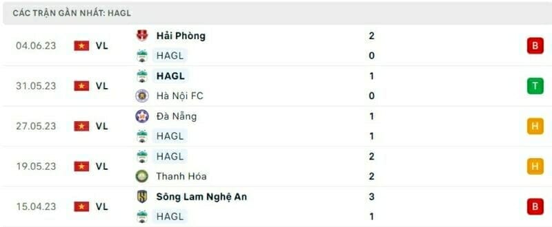 Phong độ HAGL vs TPHCM