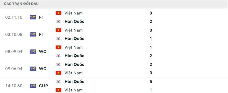 Thành tích đối đầu Hàn Quốc vs Việt Nam: